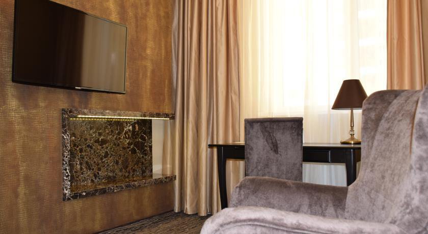 В спальне установлена ортопедическая кровать класса "queen-size".Номер оборудован сейфом, холодильником, чайным столиком, письменным столом,есть телефон,телевизор.